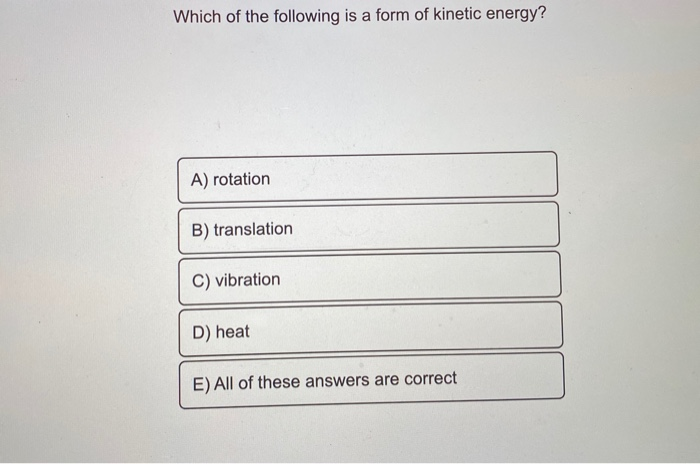 Solved Which Of The Following Is A Form Of Kinetic Energy Chegg Com